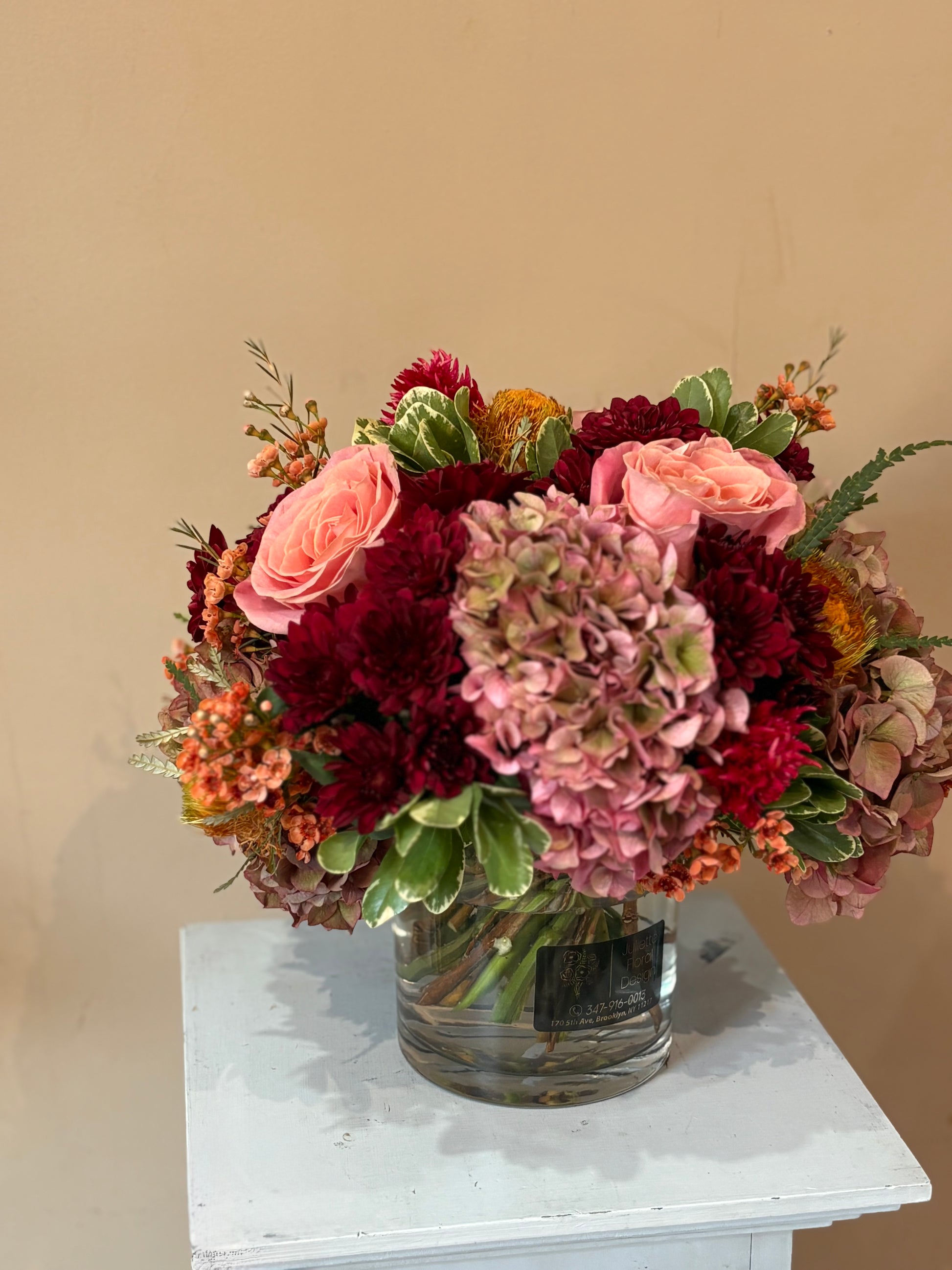 We work with seasonal flowers, so sometimes we may have to readapt the design to the available stock. We always make the new design as close as possible to the original one.