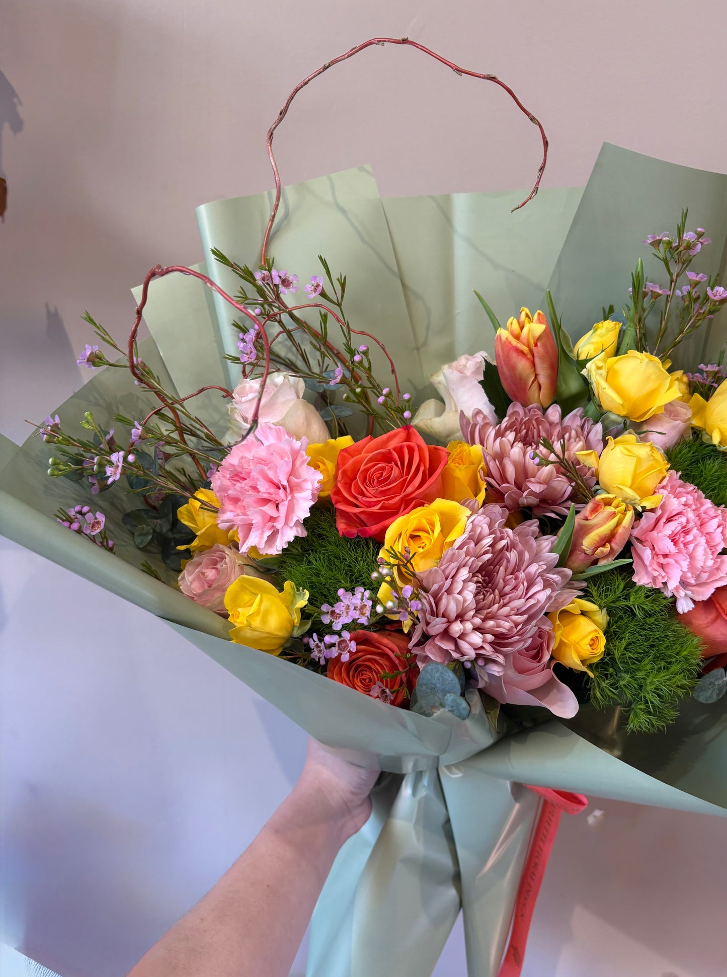 We work with seasonal flowers, so sometimes we may have to readapt the design to the available stock. We always make the new design as close as possible to the original one.