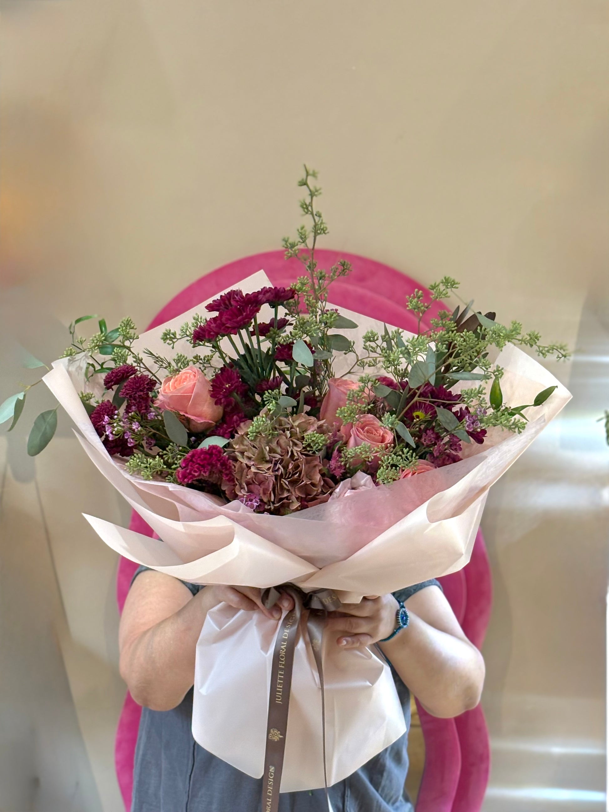 We work with seasonal flowers, so sometimes we may have to readapt the design to the available stock. We always make the new design as close as possible to the original one.