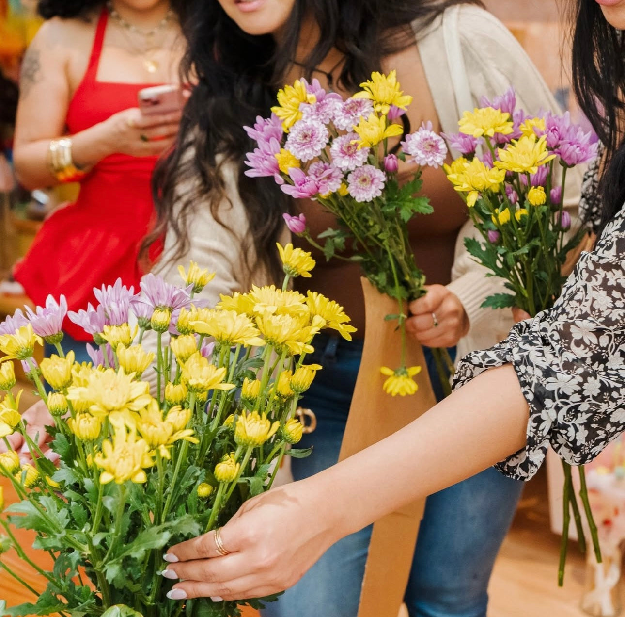 Make sure to keep your flowers out of extreme cold or heat and away from direct sunlight.